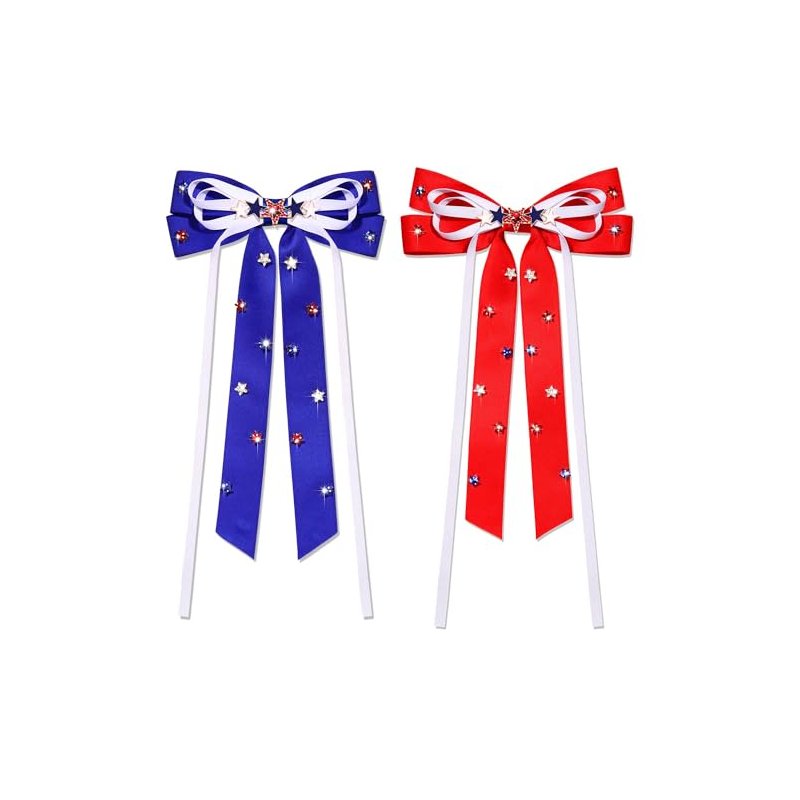 - 【4th of July Hair Bows】: Get ready to show off your patriotic spirit in style with these stunning 4th of July accessories! Feature red white and blue ribbon bow clips adorned with cute American stars and glitter star-shape rhinestones, perfect for showing your allegiance to your country when dressed up. Whether you plan on celebrating with a backyard party or by watching your city's fireworks show, these 4th of July hair bow clips remind us what America's Independence Day is all about!