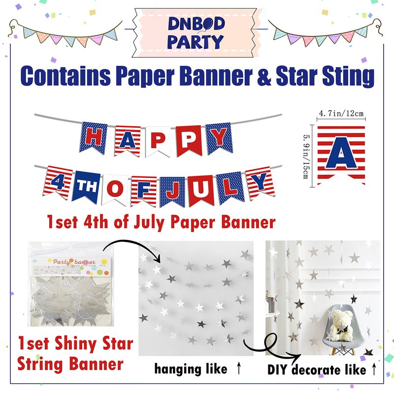 - 【Everything of 4th of July here are ready】Our balloon set not only contains red ,blue and white balloons garland arch kit and the star balloons , we also prepare 1 set 4th of July celebration paper banner and 1 set shiny star string paper banner . All colors of the balloons and all the shapes match perfectly. You could make a wonderful party backdrop by all your imagination .