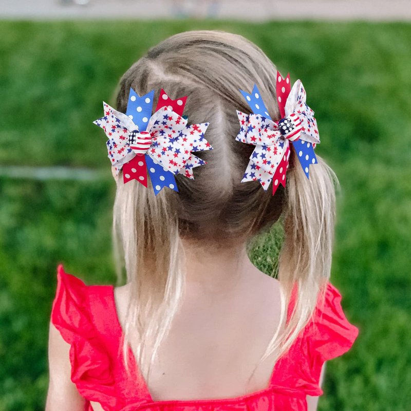 - Package Includes: 2PCS 4th of July Bow Hair Clips .
