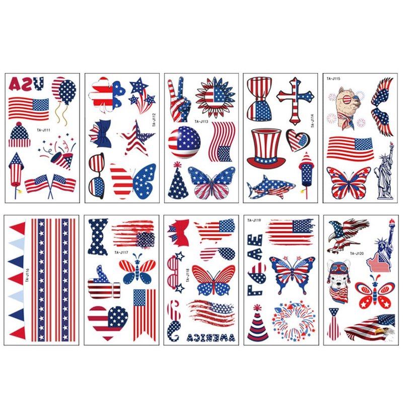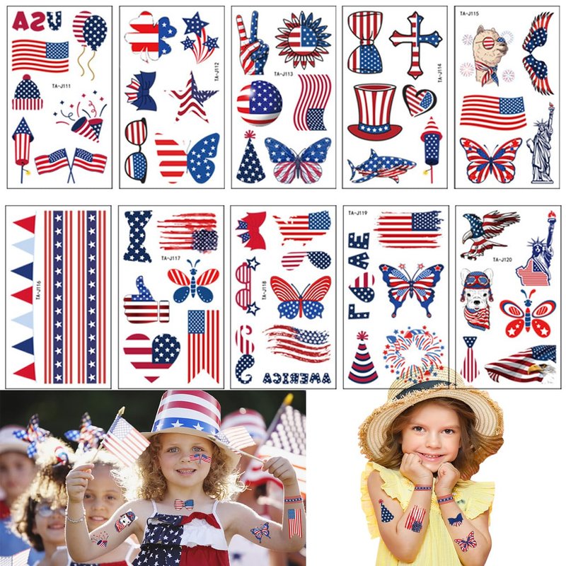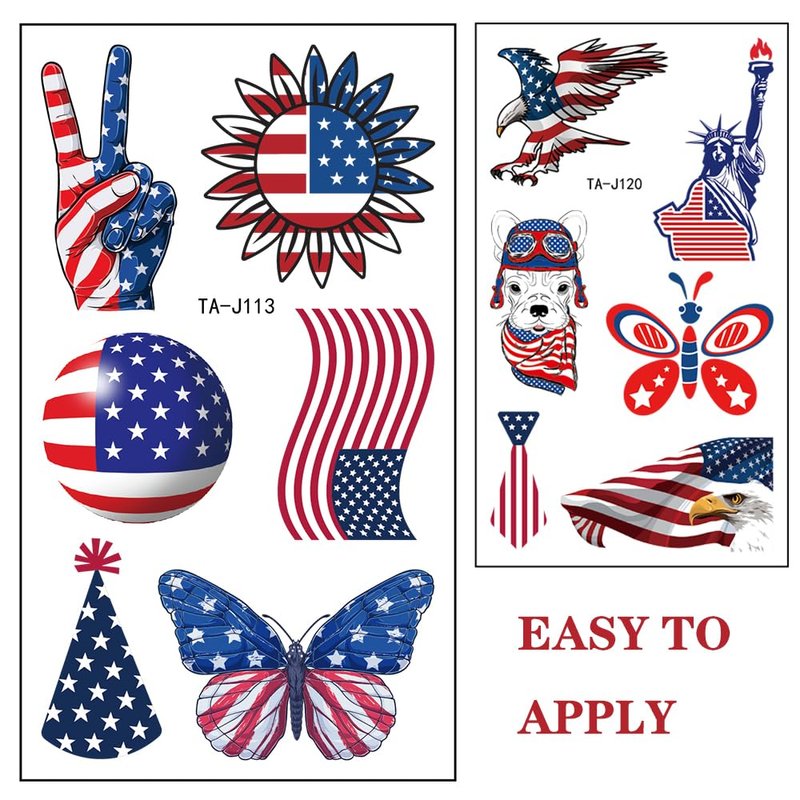 4th of July Decorations Tattoos American Flag Temporary Tattoos Patriotic Body Art Decor Supplies Independence Day Fourth of July Stickers for Kids and Adults