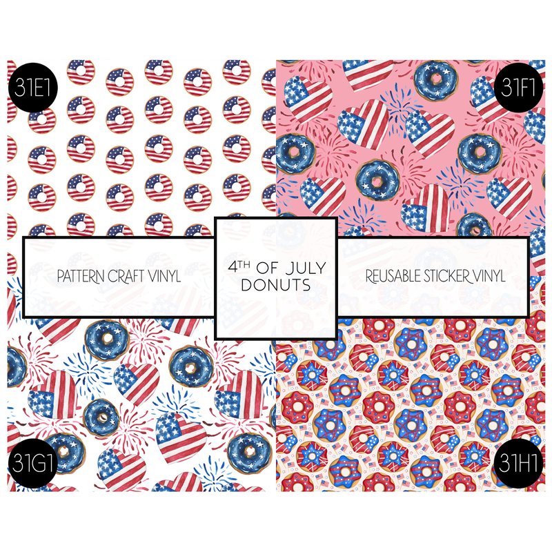 4th of July Donuts Reusable Self Adhesive Backed Vinyl Sheets 12" x 12" Independence Day Permanent No Residue Adhesive Craft Vinyl Works with Craft Cutters - 3 Sheets