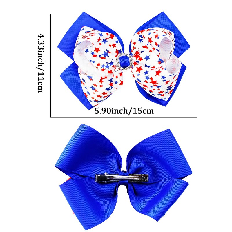 - [Hair Bows Clips Design] Our hair bow clips are designed star and rhinestone elements, the main colors are red, blue and white. Hair clips are lightweight, non-slip, and won't pull on your hair, keeping your hairstyle perfect.