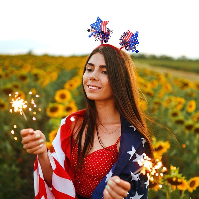 - Patriotic Party Hair Decorations: Wear this American stars hair hoop and take photos with your family and friends at the party, leaving the happy time.