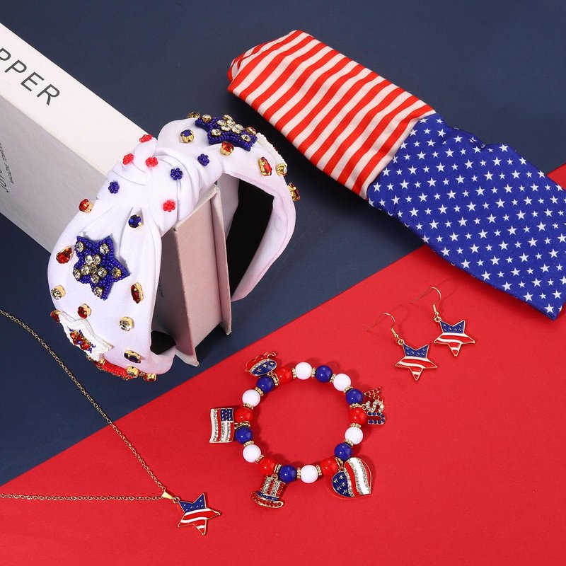 4th of July Headband American Flag Headband Fourth of July Accessories USA Star Charm Bracelet Patriotic Necklace Earrings