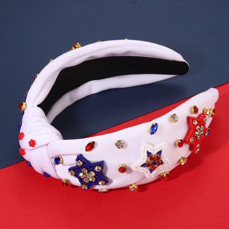 - 【American Flag Headband】: By the time the 4th of July rolls around, every heart beats true for the red, white and blue! Our 4th of July Jewelry set include 2pcs patriotic headbands, 1 pair of star earrings, 1pcs star pendant necklace and 1pcs beaded stretch bracelet, add patriotism to 4th of July outfits. Whether you plan on celebrating with a backyard party or by watching your city's fireworks show, these 4th of July headbands remind us what America's Independence Day is all about!