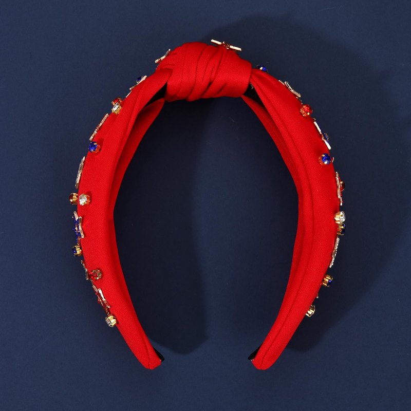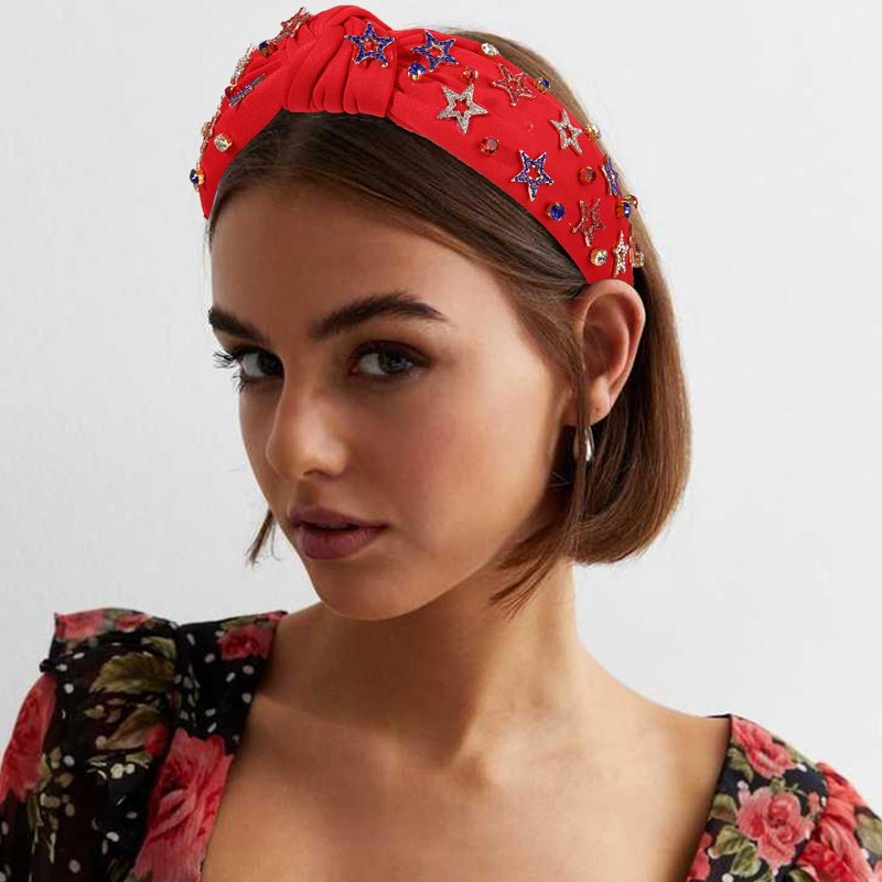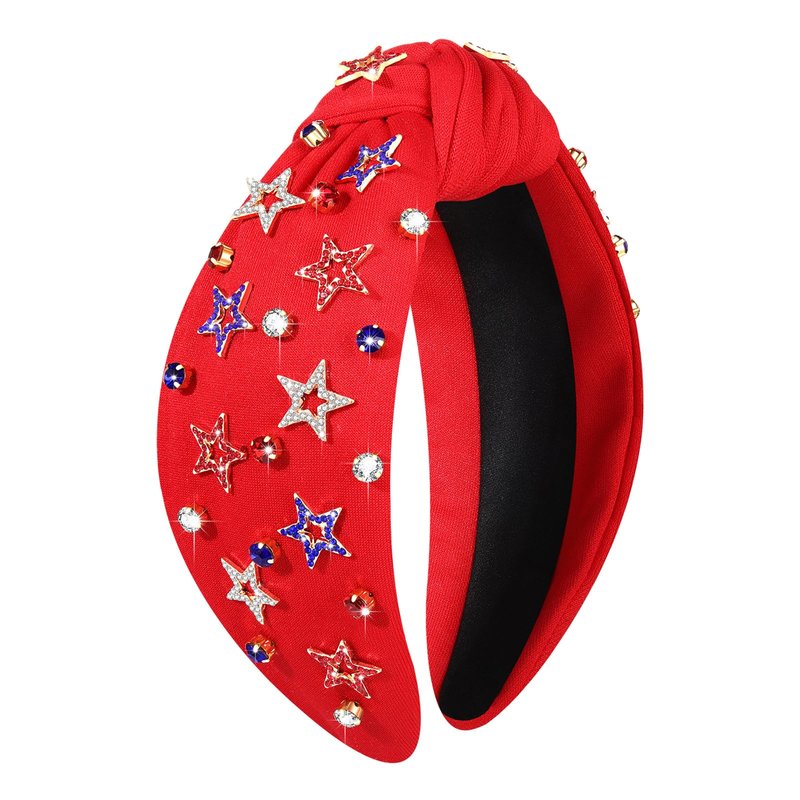 - Fourth of July Headband: Looking for an unique way to showcase your love and passion for the USA? Feast your eyes on this American Flag Headband! Embellished with red, white and blue rhinestones, stars, American flags, USA letters, bows, this jeweled headband is the ideal hair accessory for patriotic enthusiasts. Designed with a stylish wide knot top, all the accents are hand-made and securely glued on the headband, adding a touch of glamour to your hair on Independence day.
