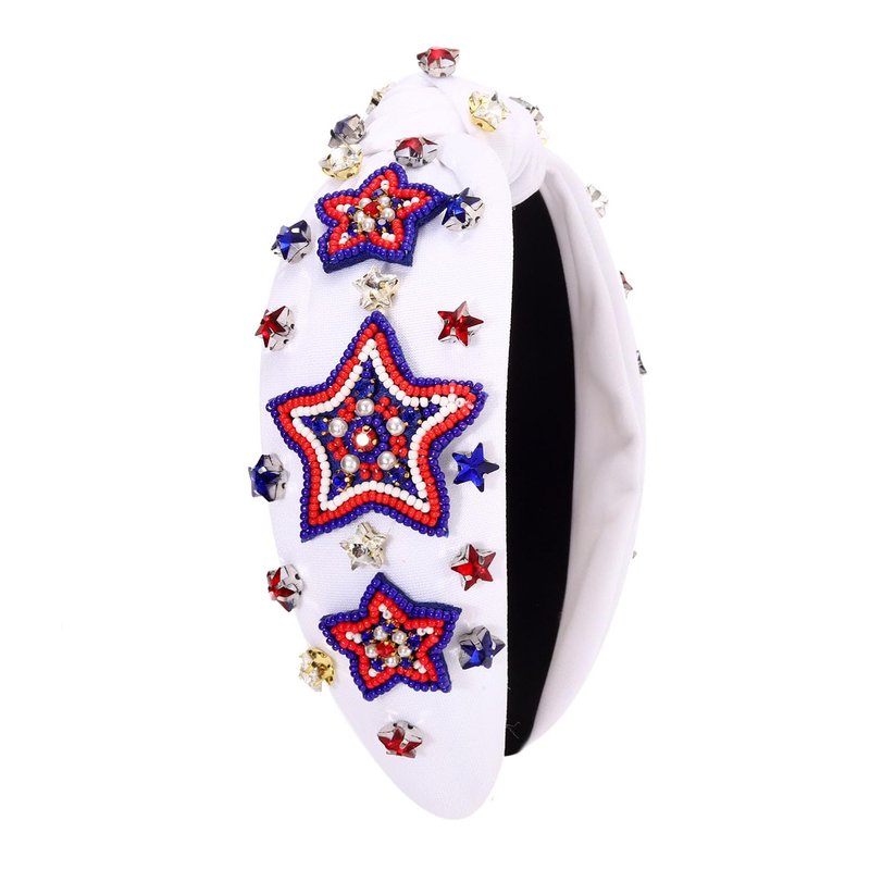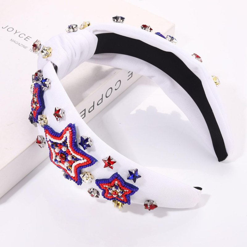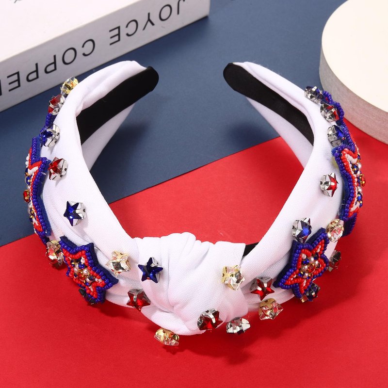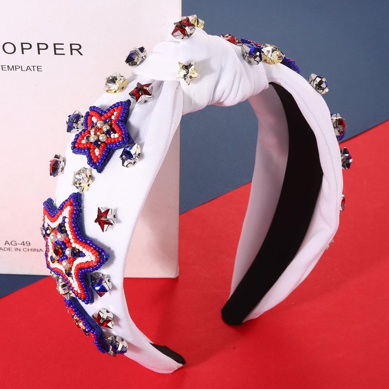 4th of July Headbands for Women, 4th of July Accessories, American Flag Patriotic Headbands, Rhinestone Pearl Knotted Headbands Beads Embellished Jeweled Headbands Holiday Gifts (Star D-White)