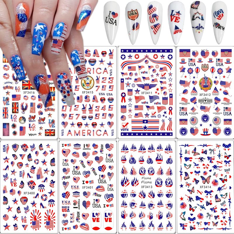 Quantity: 8 Sheets 4th of July Nail Art Stickers.
