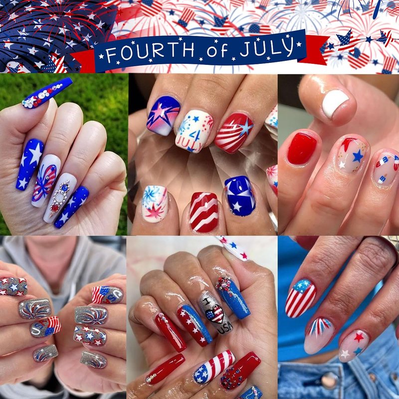 - Wide Application: The 4th of July nail sticker are suitable for decorating various nails, including gel nails, acrylic nails, fake nails, nail tips, etc,suitable for you to enjoy DIY nail design with other others, they are also cute decorations for your mobile phone, greeting cards, scrapbooks, photo frames, mirror, cups are other things, creating small surprise at your home.