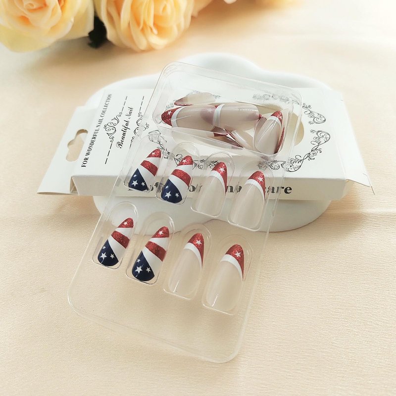 - ⭐Superior Quality⭐The 4th of july press on nails are made of high-grade ABS material, the nails press ons with moderate thickness are not easy to break, will not hurt nails and the human body, and can be used with confidence, You can safely choose a false nails that fits your finger size and DIY your desired nail shape.