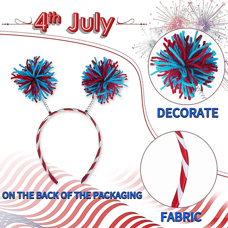 - [ Package Contains ] You will receive 1 piece pom pom head bopper, designed with 4th of July theme, looks so fun and cute, can perfectly decorate your hairstyles and costumes.