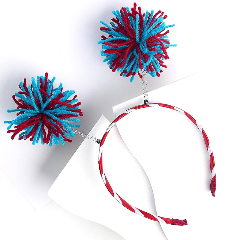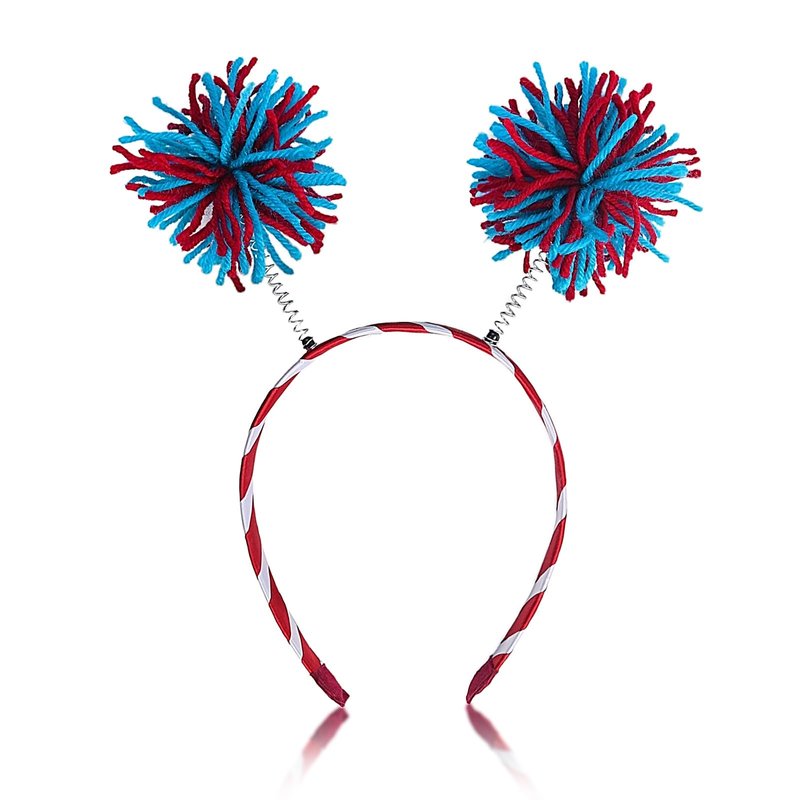 - [ Eye-catching Design ] Cute hair hoop is decorated with 2 fluffy balls in red and blue colors connected by springs, the balls will shake when walking or running, look adorable and attractive, and make you easily become the focus of the crowd.