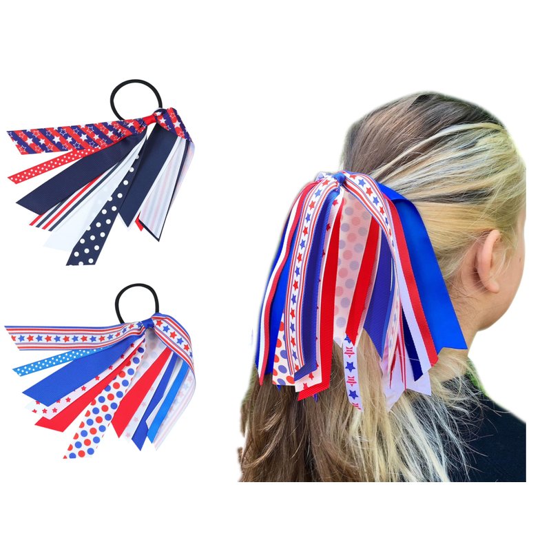 4th of july ponytail holder streamer hair ties,patroic red white blue ribbon bow hair scrunchies,cheer outfit accessories gift for grils