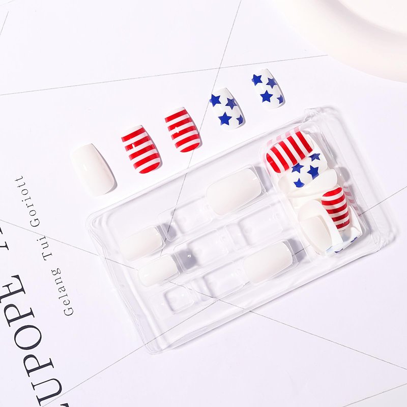 - Easy to Use: File and clean your nails before applying, choose the proper short flag nails for each finger; Then press the Independence Day fake nail on your nail with gel or glue for about 5 seconds; Now you have beautiful new nails
