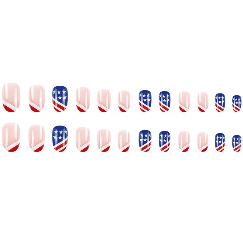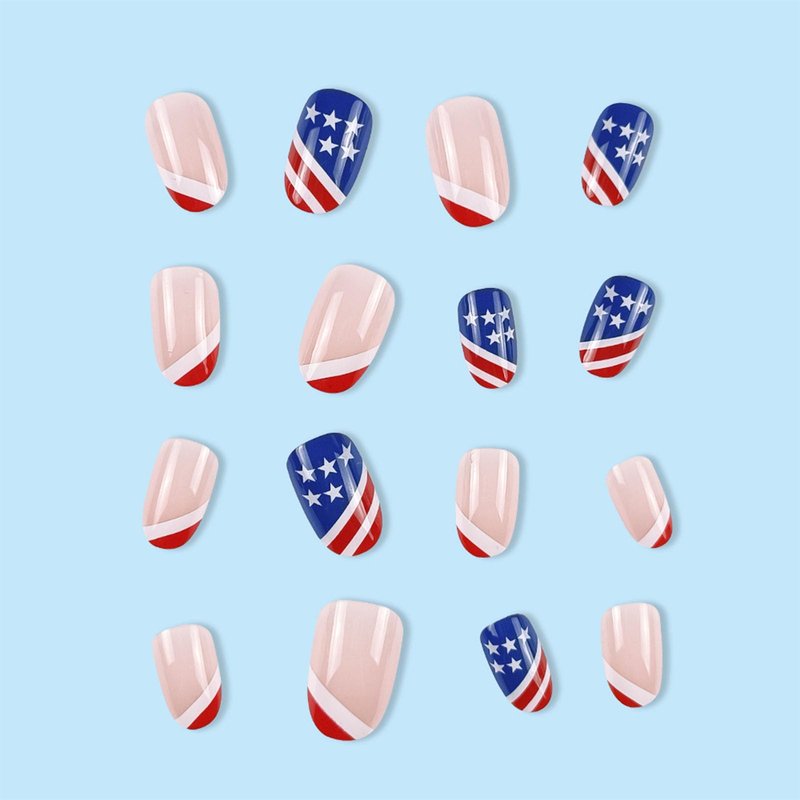 24Pcs Independence Day Fake Nails Glossy 4th of July Press on Nails Blue Red False Nails for Women Girls Nail Art Decorations.