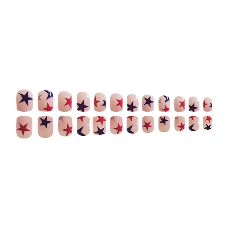- Package Contains:You will get 24Pcs 4th of july fake nails with design press on nails in 12 sizes, 1 nail file and 24 jelly glues,1 small wooden stick.