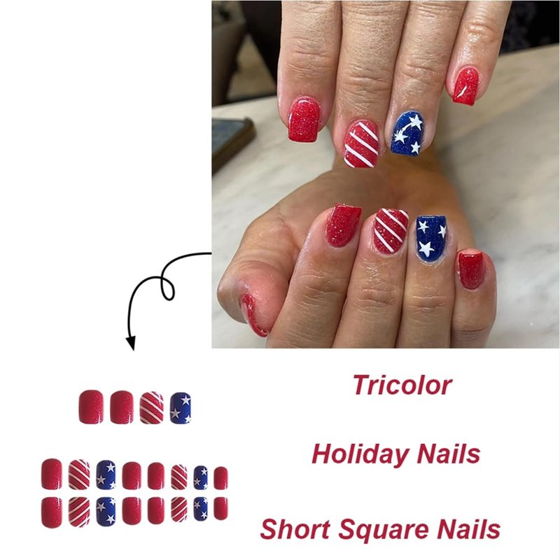 - 🔴【Independence Day Style Designs】These independence day square five pointed star press on nails are designed with luxury and simplicity and glitter, Calling all who love America,these July 4th fake nails are made for Independence Day,Provide a special festive atmosphere for 4th of July,It is an ideal choice to showcase your unique taste and personality.