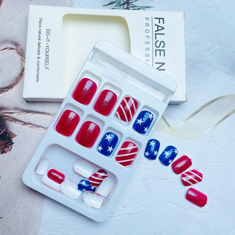- 🔴【Widely used】Reusable 4th of July glue on nails supplies suitable for various social occasions great for nails salon,DIY home nail art decorations. Perfect to be used on prom, party, and they also suitable for Independence Memorial Day, Christmas Day and other festival.It is given the perfect gift for partners, family, friends.
