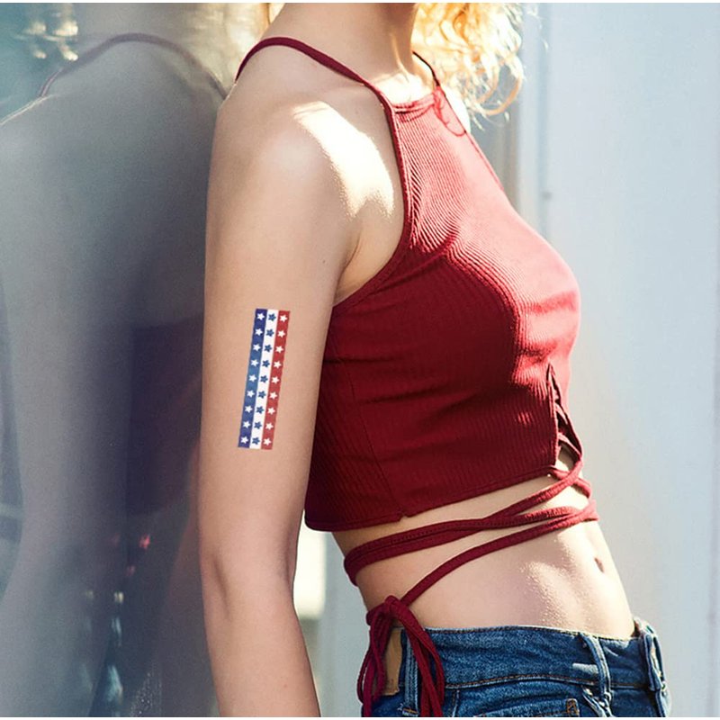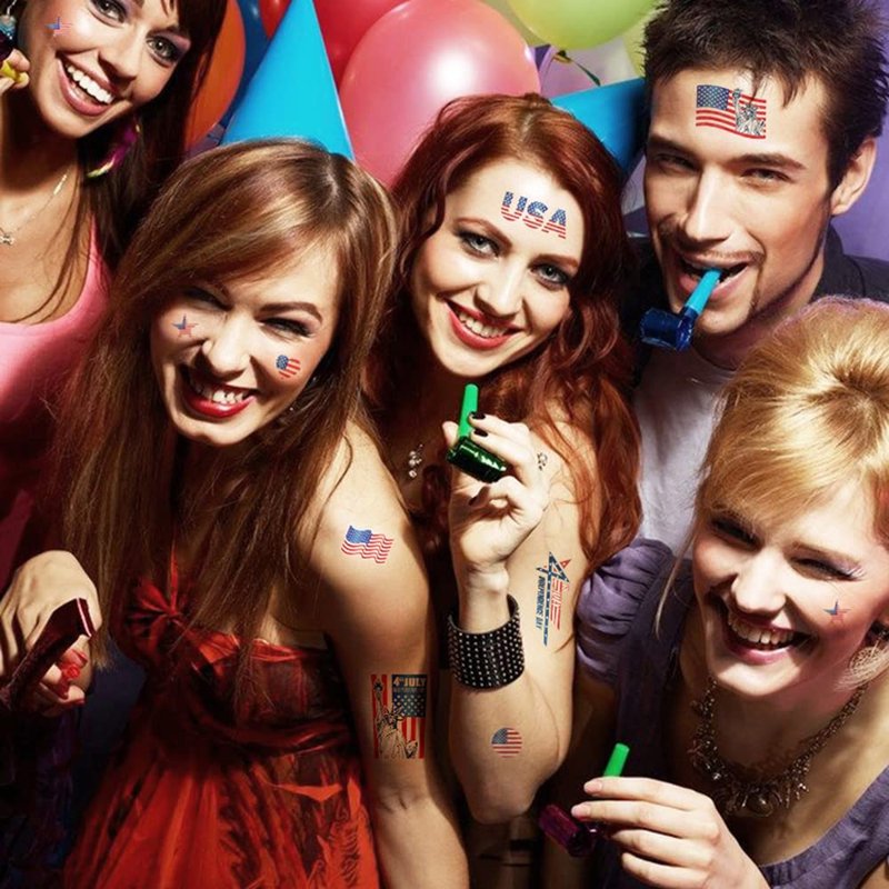 - ⚾Wide Applicability: Temporary Independence Day tattoos can be used on your face, chest, arms, legs, back, buttocks, waist, navel and more to make you look more festive. You can also apply them to some smooth objects such as glass, tiles, stationery, paper, stainless steel, plastic, gift boxes, mobile phones.