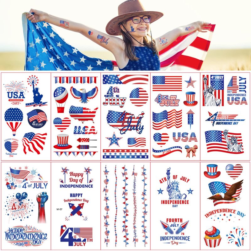 4th of July Temporary Tattoo Kids : 10 Sheets Tattoo Stickers Complete Independence Day Collection, these patriotic tattoos are perfect for Memorial Day and all your 4th of July decorations. (M series)
