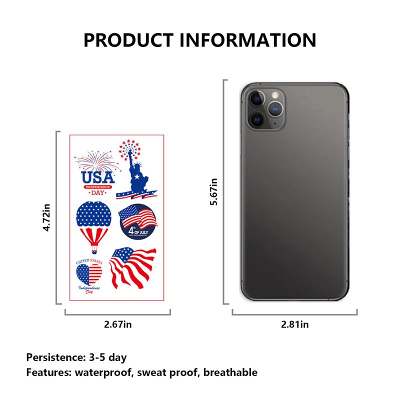 - Set includes assorted patriotic designs such as American flags, fireworks and more,The tattoo sticker set contains 56 tattoos