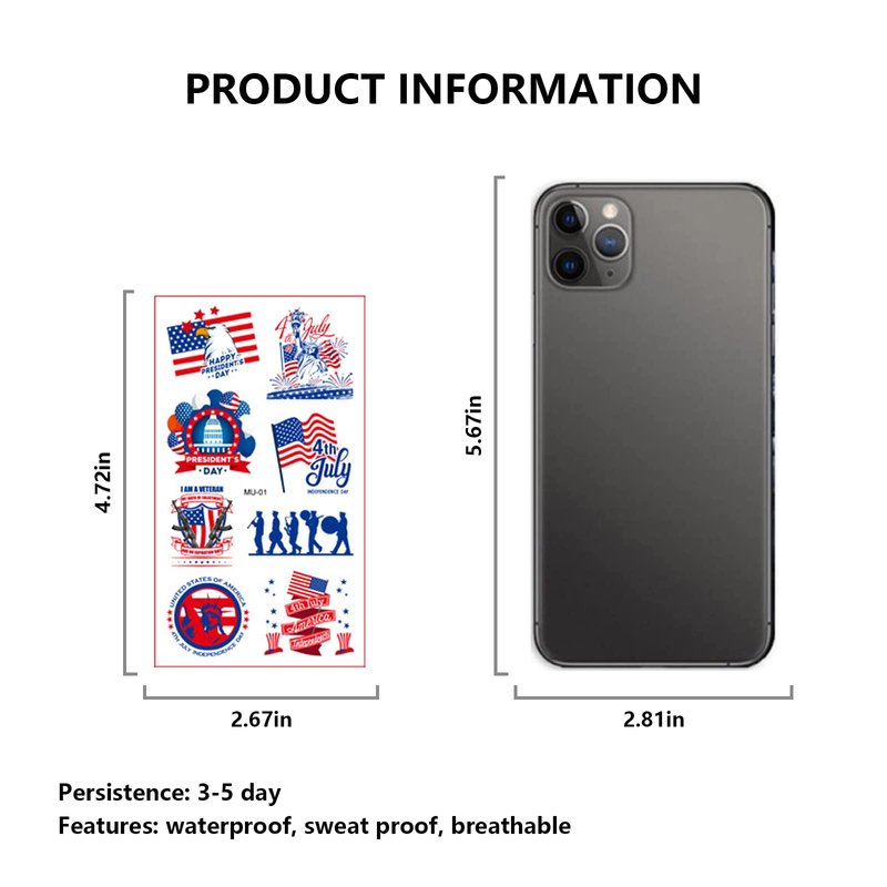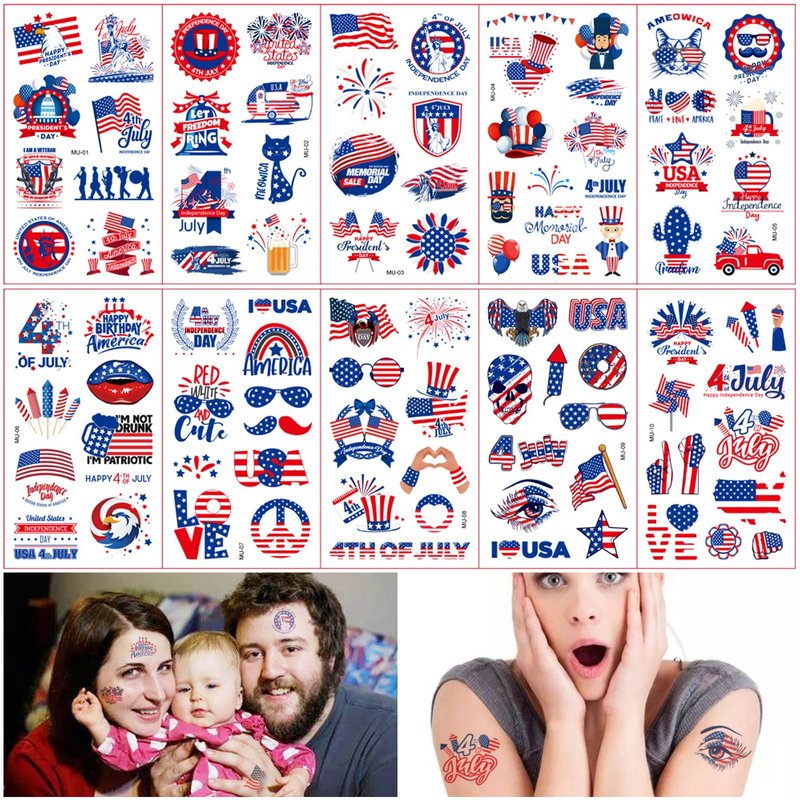 - Set includes assorted patriotic designs such as American flags, fireworks and more,The tattoo sticker set contains 91 tattoos