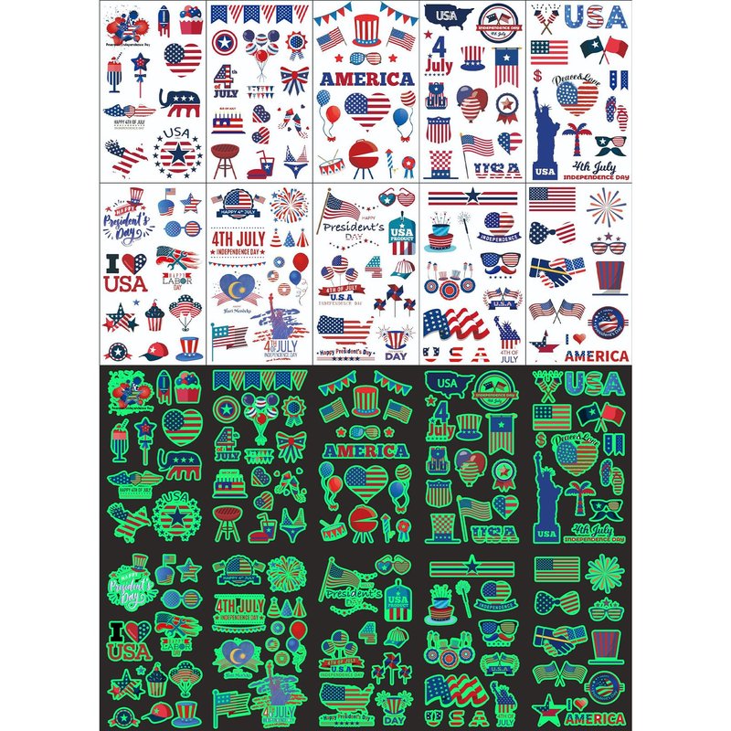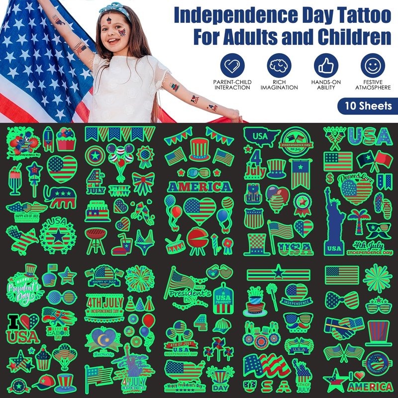 - ❤【Glow in the Dark Patriotic Temporary Tattoos】you will get 10 sheets patriotic temporary tattoo stickers in the package, the size of each one is 10.5 x 6 cm/ 4.13 x 2.36 inch; more than 90 pieces of tattoo stickers, each pattern fits the theme of Independence Day and contains a variety of charming and creative patterns, show off your patriotic side with this July 4th themed temporary tattoos