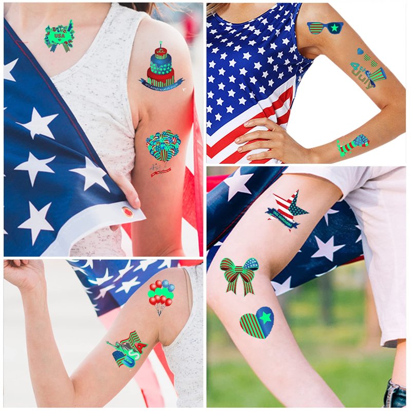 - Easy to Apply and Remove:Sweat-proof and water-proof eIndependence Day tattoos. Adhered well and stayed on all night. Instructions came with are easy to follow. Remove quickly tattoos with oil, Just apply oil to tattoos and rub off, it's that simple!
