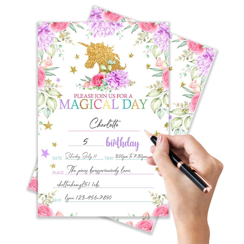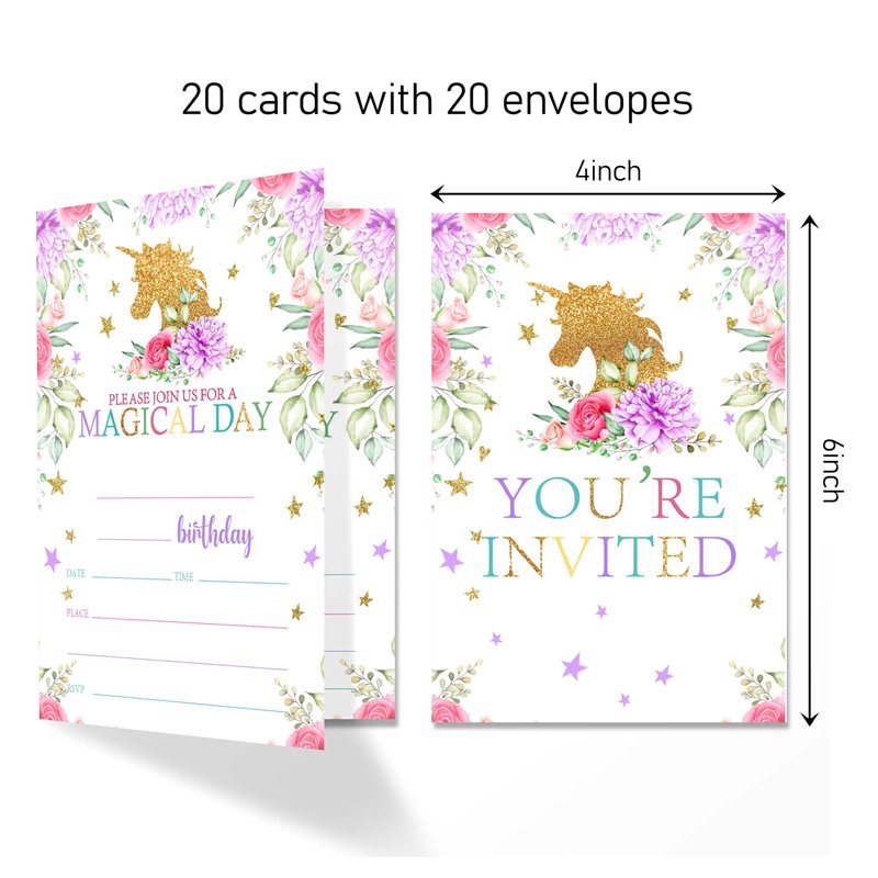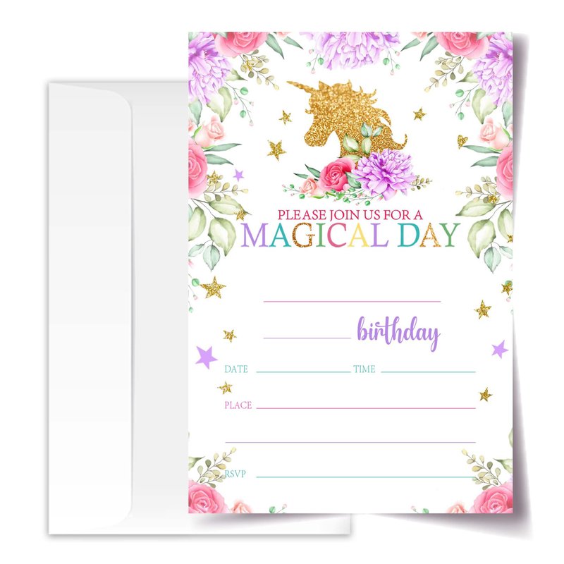 4x6 Magical Birthday Invitations, Magical Invitations For Girls Birthday, Birthday Invitations Girl, Kids Birthday Invitations, Magical Party Supplies for Birthday, 20 Cards with 20 Envelopes.(01) (5)