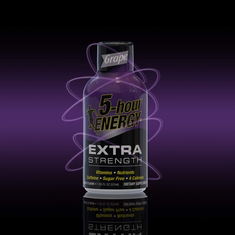 Some people, maybe you, need a lot of extra energy. You're working two jobs, or working and going to school, or working and a single parent. Sound familiar? Then try Extra Strength 5-Hour Energy shots. It's the energy shot for extra busy, extra hard working people that need a big boost of extra energy. Extra Strength 5-Hour Energy features a beefed up energy blend and a cool new look. It contains as much caffeine as 12 ounces of premium coffee. Like original 5-Hour Energy shots, Extra Strength 5-Hour Energy contains zero sugar, only four calories. Flavor: Grape.