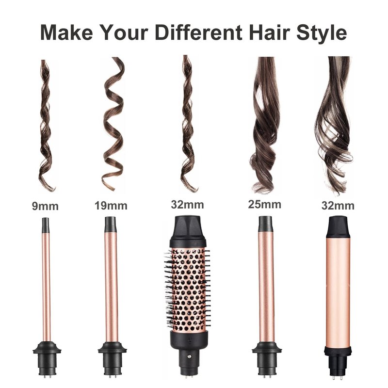 5 in 1 Interchangeable Ceramic Curling Iron Set offers 5 different size of barrels: