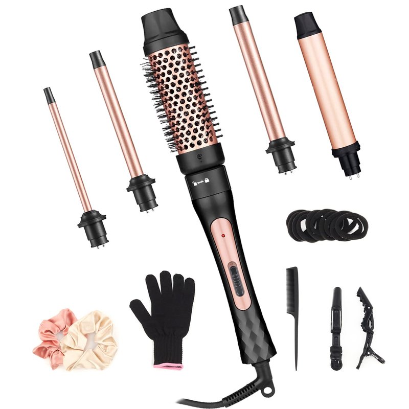- 💕【Ideal Gifts】-5 in 1 curling brush set, create frizz-free, shiny, lasting curling hairstyles. It comes with a heat-resistant glove, 2 clips, and a comb. It is a perfect gift for your friend, girlfriend, wife, mother, or daughter