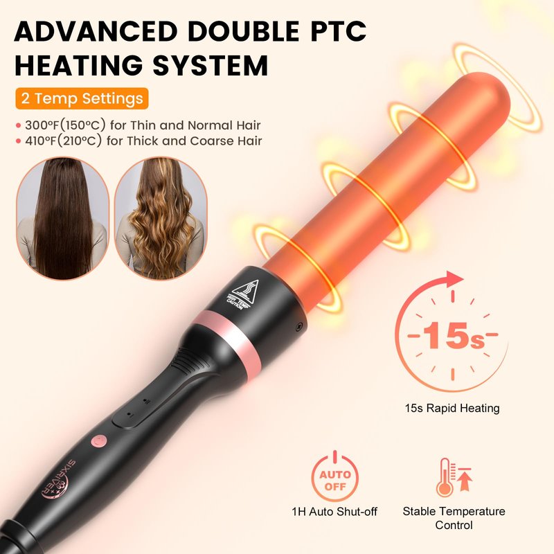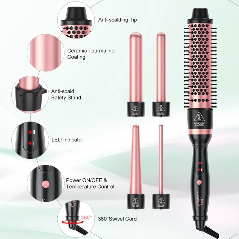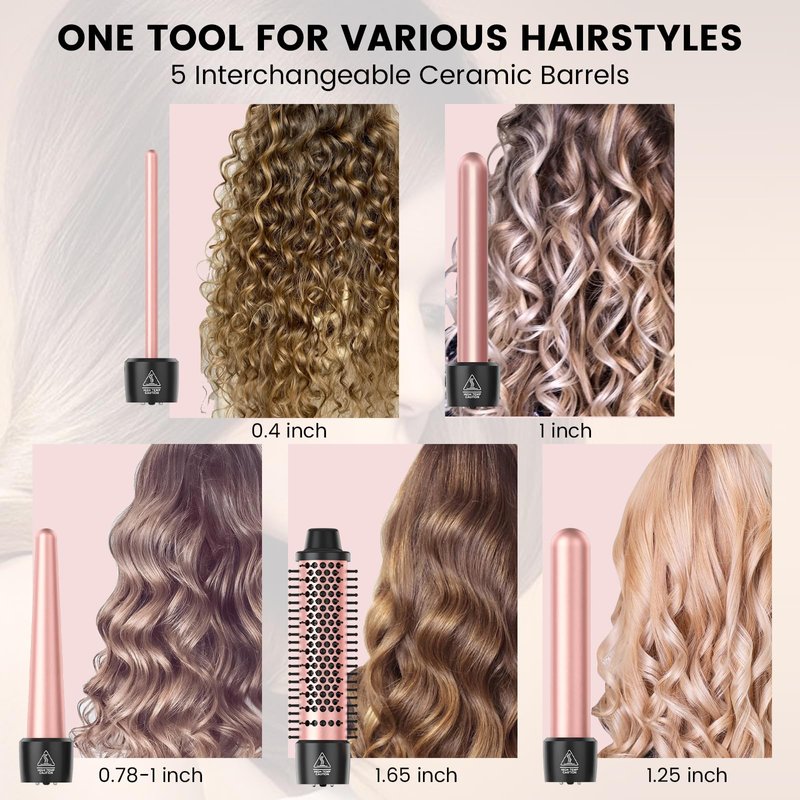 - Enjoy Various Hairstyles with Only One Tool: The sizes of Sixriver 5 in 1 curling iron set include 1.65" curling iron brush, 1" curling iron for vivacious volume, 0.4" small curling wand for tight curls, 0.78-1" tapered barrel curling wand for voluminous curls, 1.25" curling wand for beach wave, make charming hairstyles everyday, easy to use for beginners.