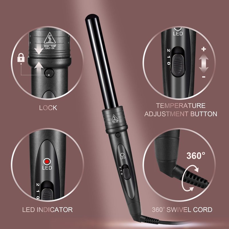 - 【5 in 1 Curling Iron】With 5 interchangeable tourmaline ceramic tubes (0.35-0.75" for small curls, 0.75" Iron for medium Curs, 0.75-1" Iron for Defined Large Waves, 1" for Classic Curls , 1.25" for loose curls), this curling iron set can easily create different stylish hairstyles!