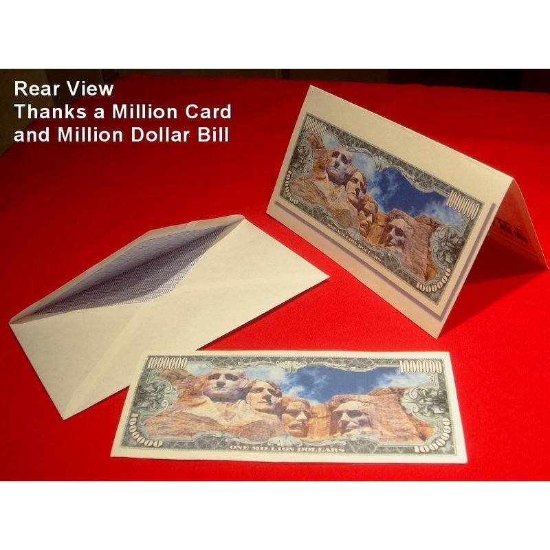- Bonus Includes 1 "Thanks a Million" Thank You Card, 1 Statue of Liberty / Mount Rushmore Million Dollar Bill and 1 Envelope