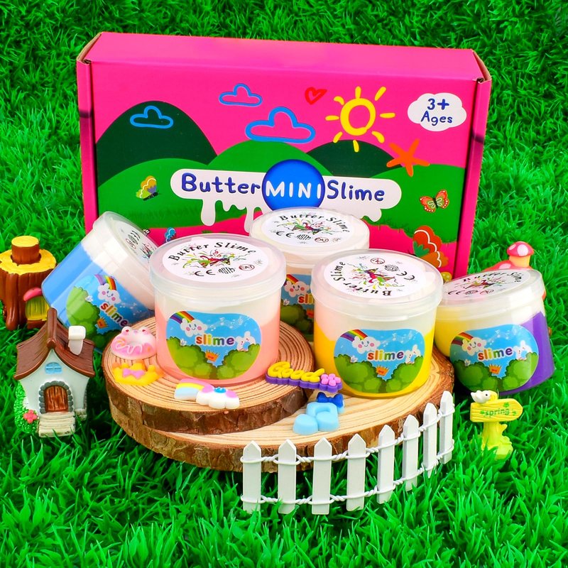 - 🌻5 Pack Butter Slimes Kit:5 two-color butter slimes, with cute accessories and cute pieces, increase the fun of mixing and let children experience the fun of slime creation