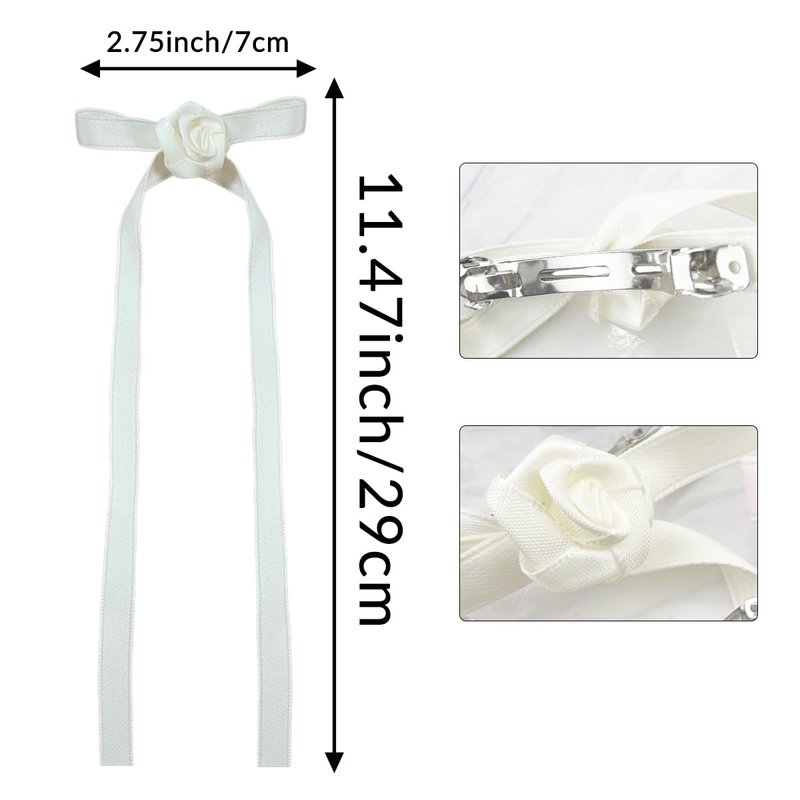 5 PACK Flower Hair Bows Clips for Women, Rose Bowknot Hair Barrettes Bow Prom Accessories For Teen Girls,Satin Silk Hair Bow Clips With Long Tails Nonslip Hair Ribbon