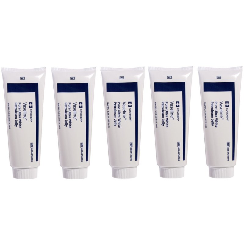 5 Pack Medical Grade Vaseline Pure Ultra White Petroleum Jelly, 3.25 oz (97.5 mL) Tubes ONLY by Kendall/Covidien