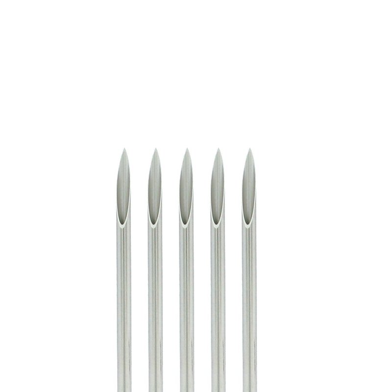 - five-piece value package of body 10 gauge piercing needles. The needles can be used for multiple piercings in your body area. Use it for nose piercing, ear piercing, or any other body area.