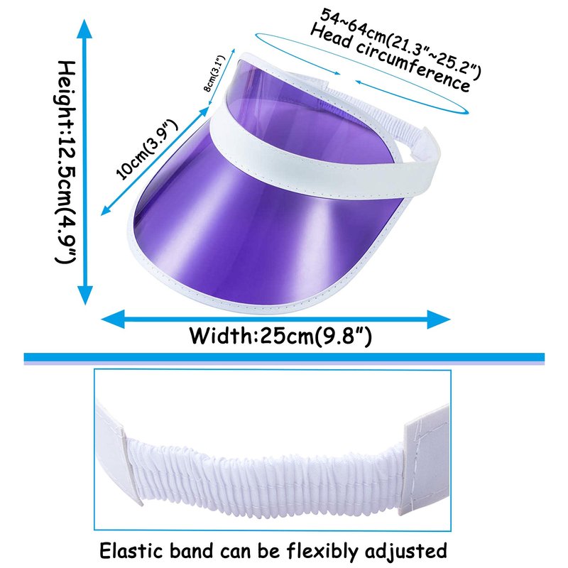 - One size fits most adults, adjustable visors with elastic band,Head circumference 21.3~25.2 inch (54~64 cm) (approx).