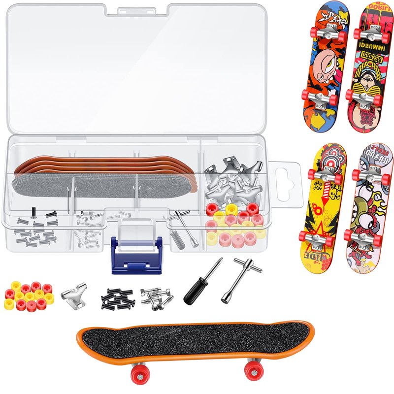 - You Will Get: package come with 5 fretboards (1 complete, 4 need to be assembled), 1 wrench, 1 screwdriver, 8 brackets, 16 mini wheels, 8 bracket screws, 16 wheel screws and a box, completed finger skateboard kits to meet your DIY needs and bring you much fun
