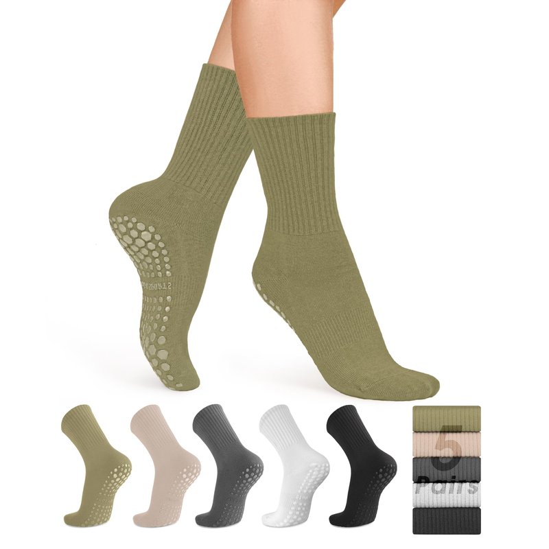 5 Pairs Pilates Socks Yoga Socks with Grips for Women Non-Slip Grip Socks for Pure Barre, Ballet, Dance, Workout, Hospital, Assorted