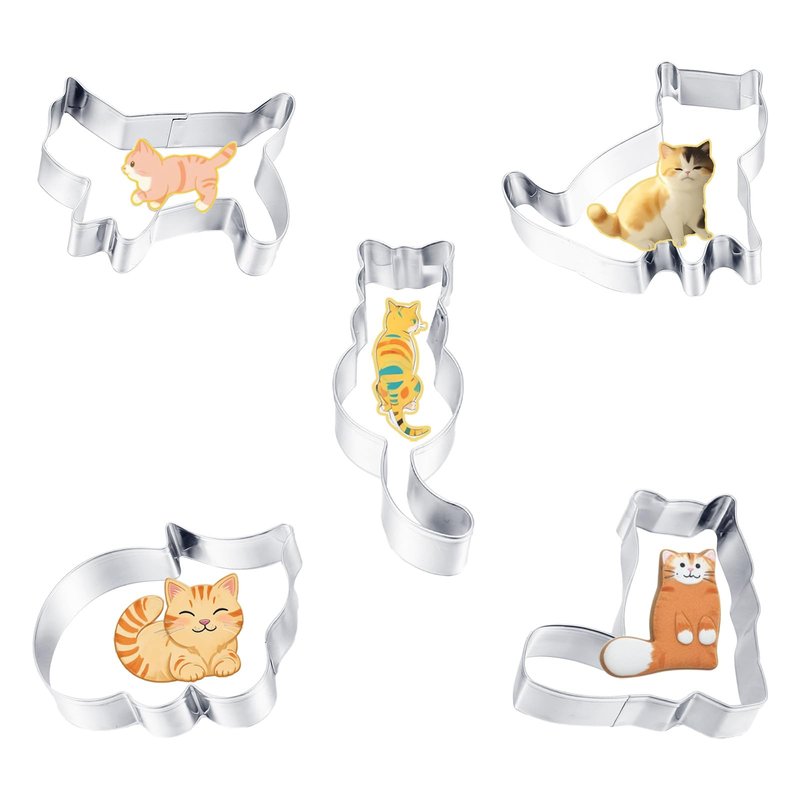 5 Pcs Cat Cookie Cutter, Safe Stainless Funny Cookie Cutters with 5 Different Cat Shapes Reusable Washable Cookies Cutter Set for Kitchen Baking Dessert Making