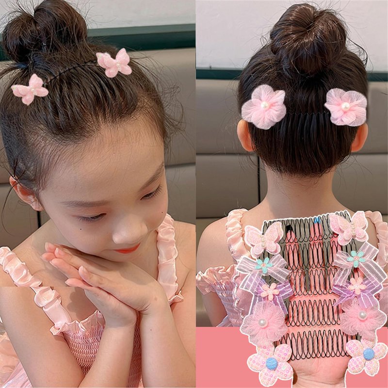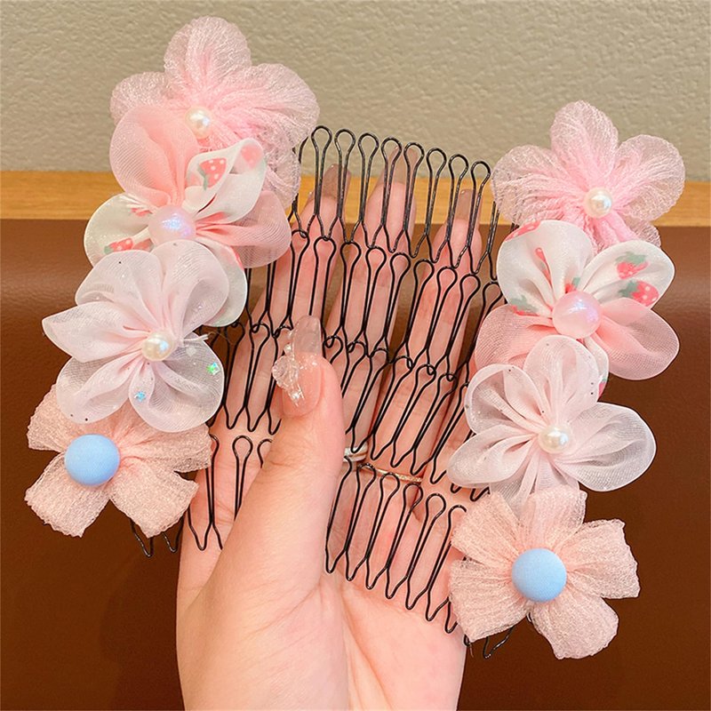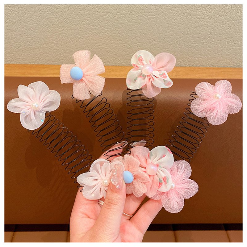 5 Pcs Cute Metal Hair Clip Combs Magic Pearl Hair Accessories Camellia Flower Barrettes Wire Twist Bun Clamp Invisible Bang Comb for Girls kids C#02
