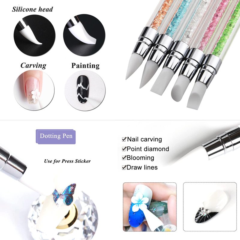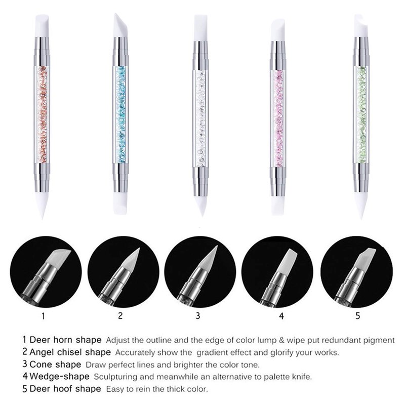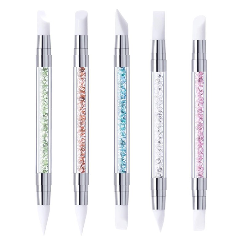 5 Pcs Dual Tipped Silicone Nail Tools Nail Art Sculpture Pen,Silicone Head Acrylic Handle Nail Art Brushes,Nail Art Tools for Home Salon (5 color)