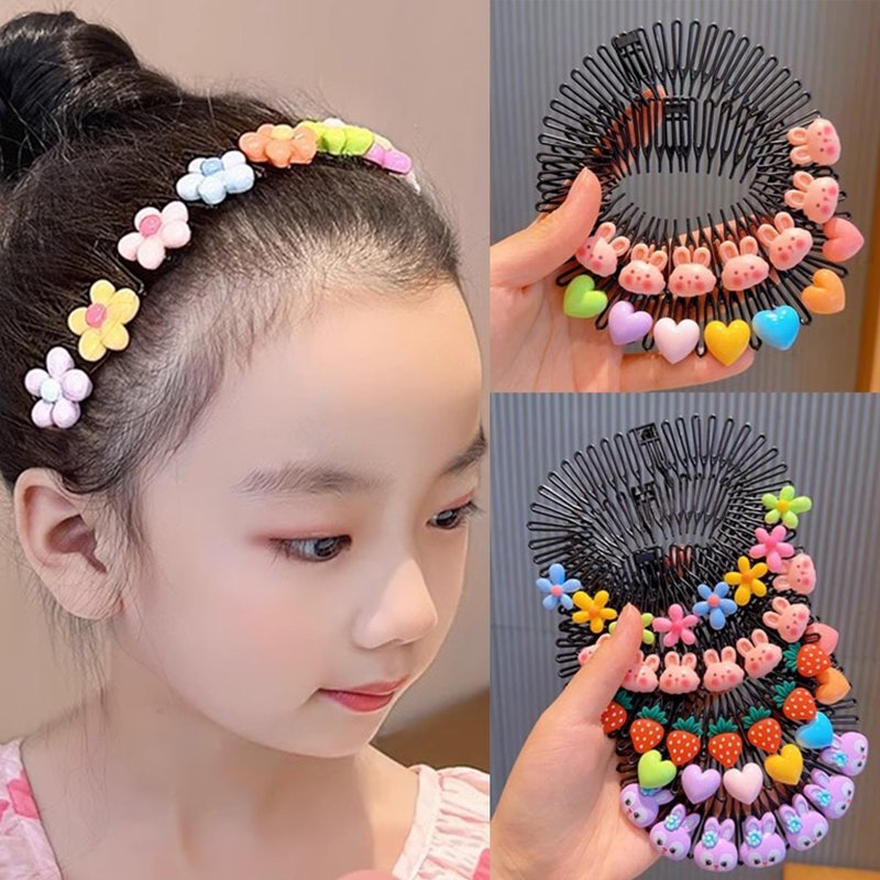 5 Pcs Full Circular Stretch Comb Headbands Flexible Plastic Circle Comb Colorful Plastic Hair Wrap Hairband Holder for kids Girls Hair Accessories C#01