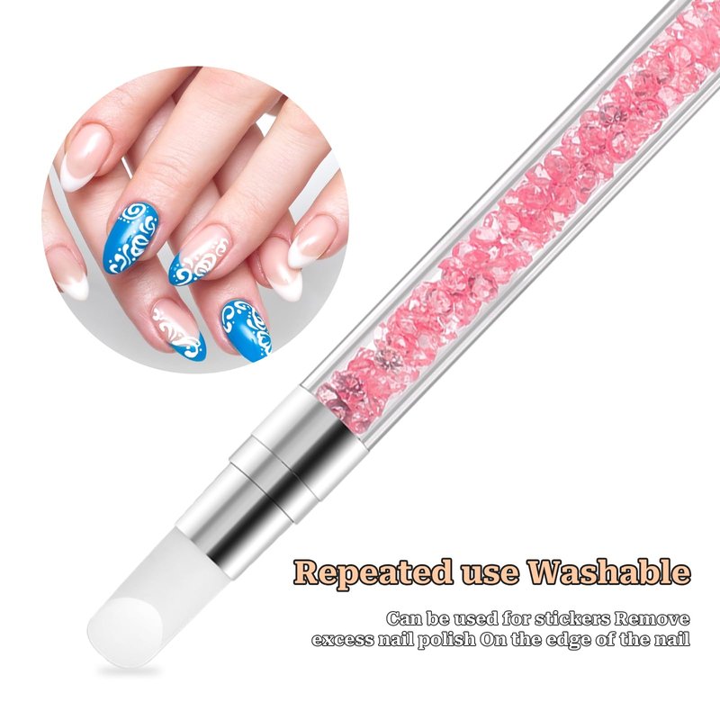 - HIGH-QUALITY MATERIAL: Our durable and reliable nail art pens are made of high-quality materials, including a clear acrylic tube decorated with colorful crystal rhinestones inside, a silver metal handle, and a gentle silicone tip that is not easy to deform or corrode