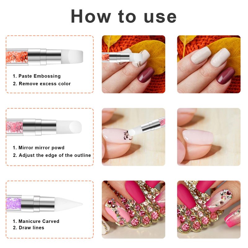 - MULTIPLE USES: Make your nails more beautiful and attractive with our silicone nail tools, which can be used for painting, sculpting, shaping, styling, and more.