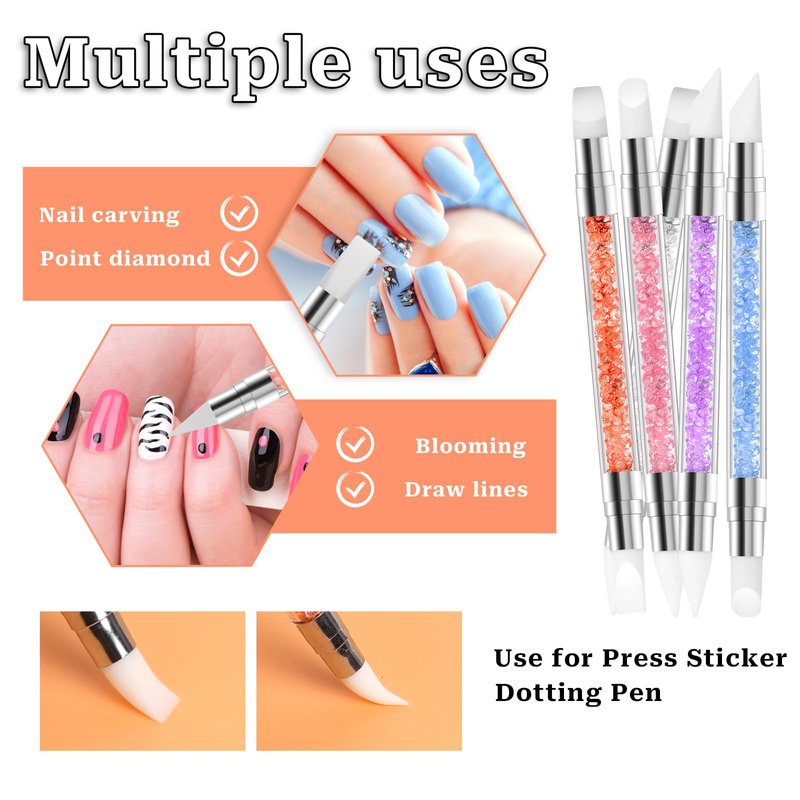 - VALUE SET: Easily create stunning 3D nail art designs with our Dual-ended Silicone Rhinestone Nail Polish Sculpting Pen Set, which includes 5 different colors for every style
