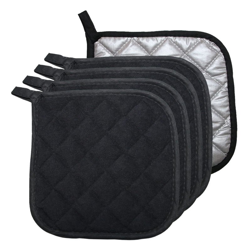 5 PCS Pot Holders for Kitchen, Cotton Potholers with Great Heat Resistance, Hot Pads, Trivets for Cooking and Baking Black